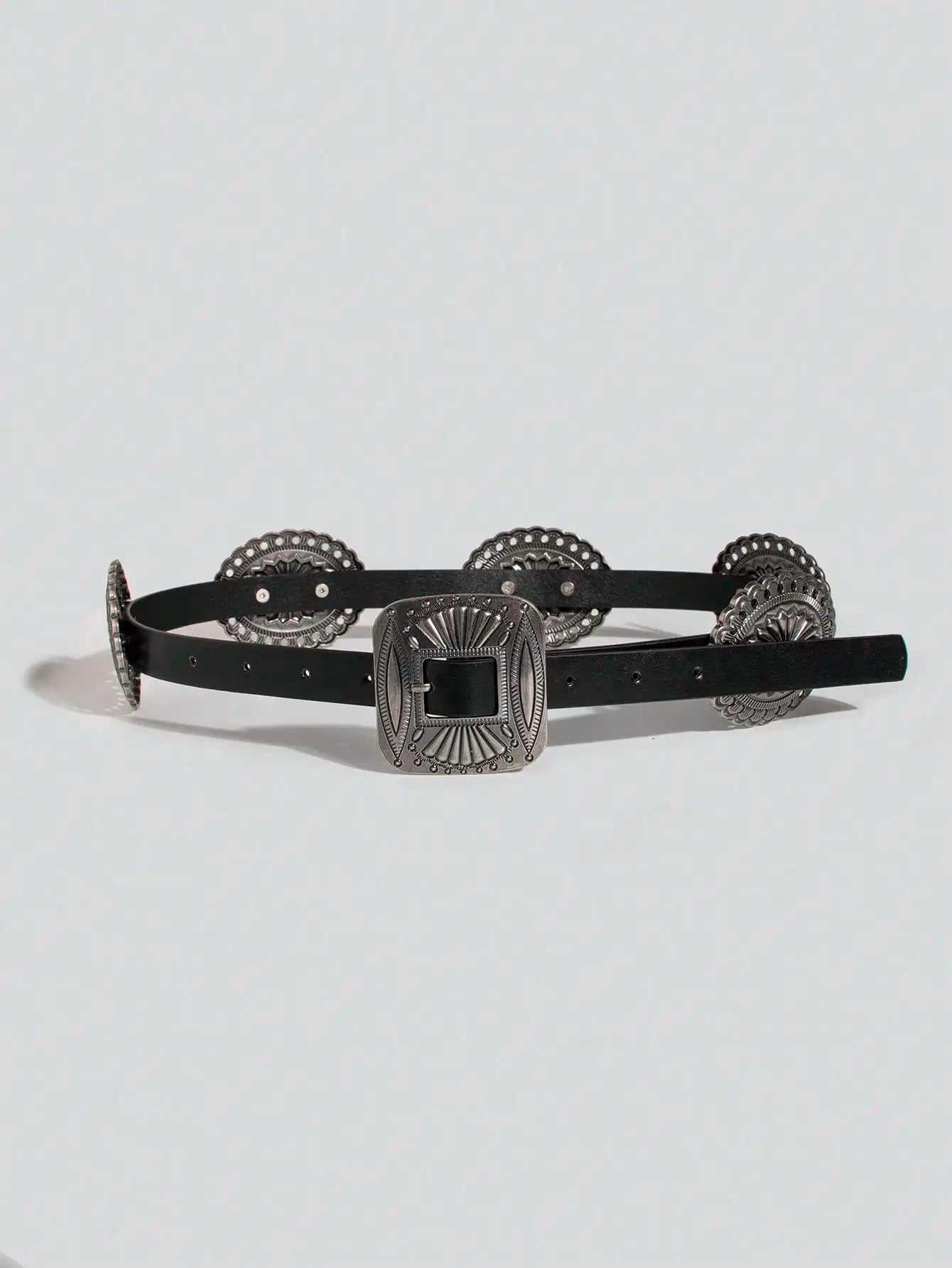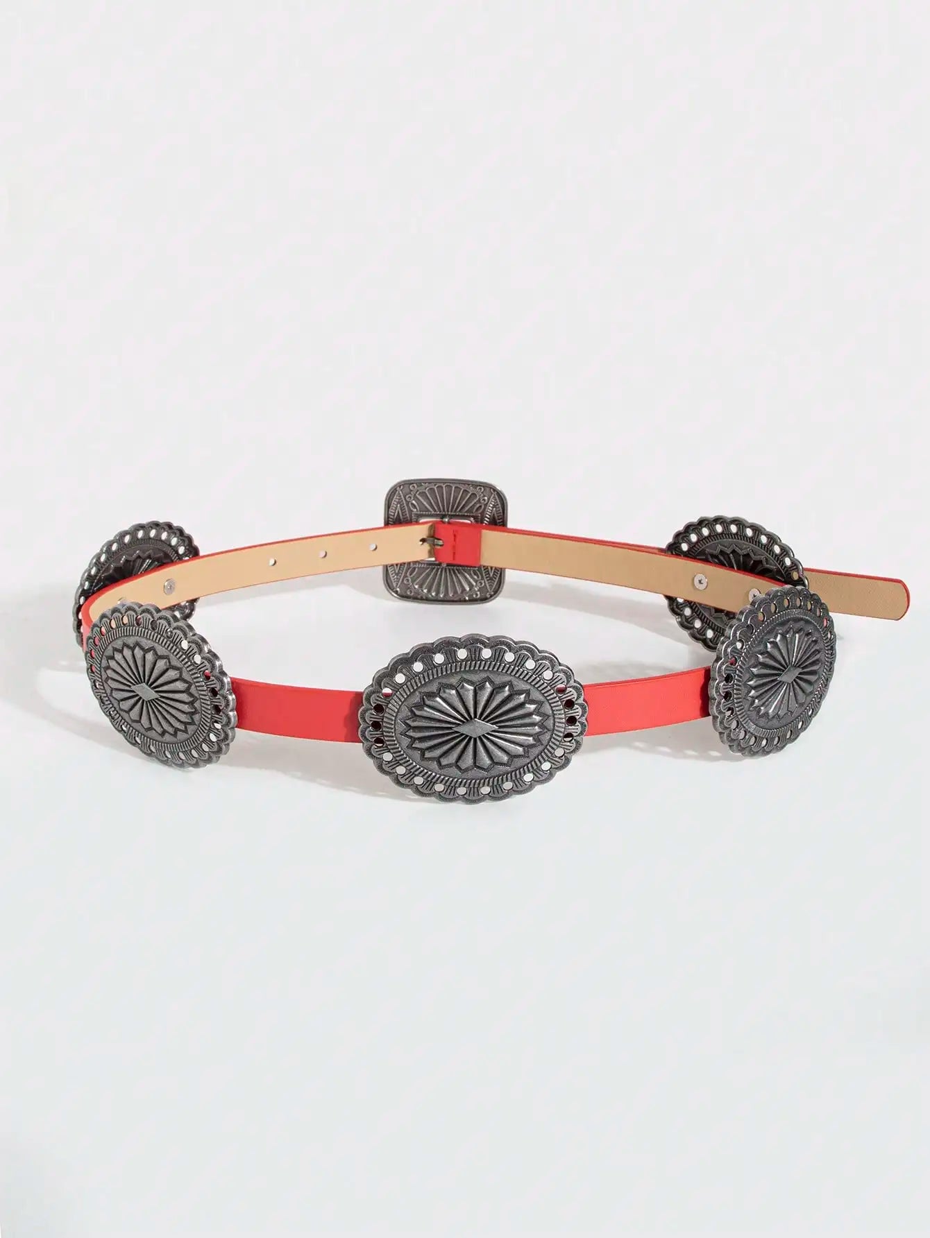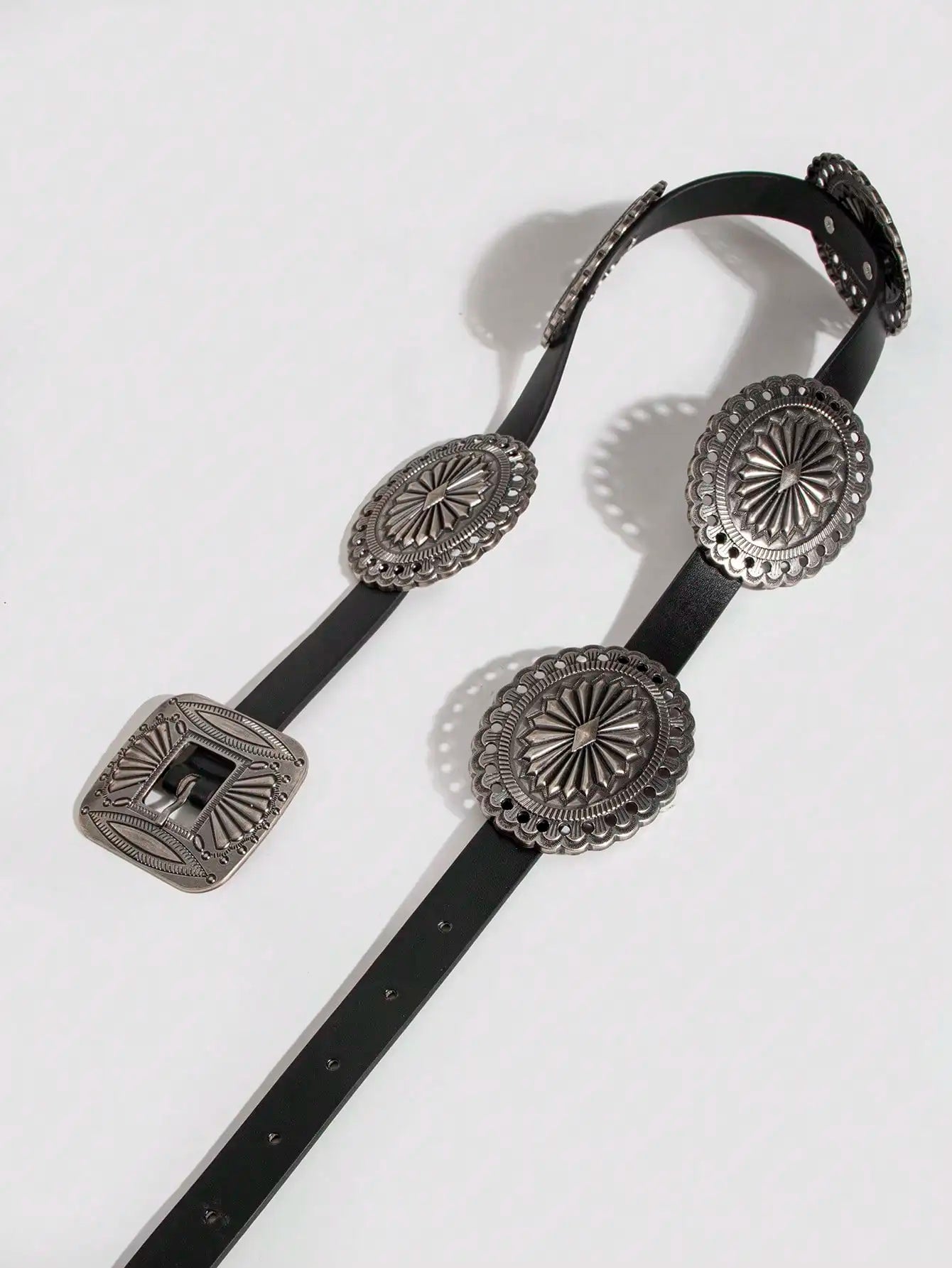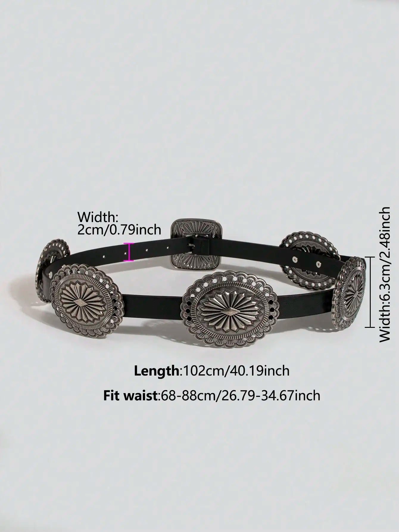 Women's Punk Style Metal Carved Accessory Cowboy Cowgirl Heavy Duty Belt Boho
