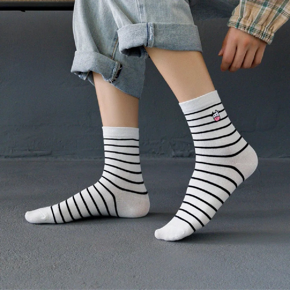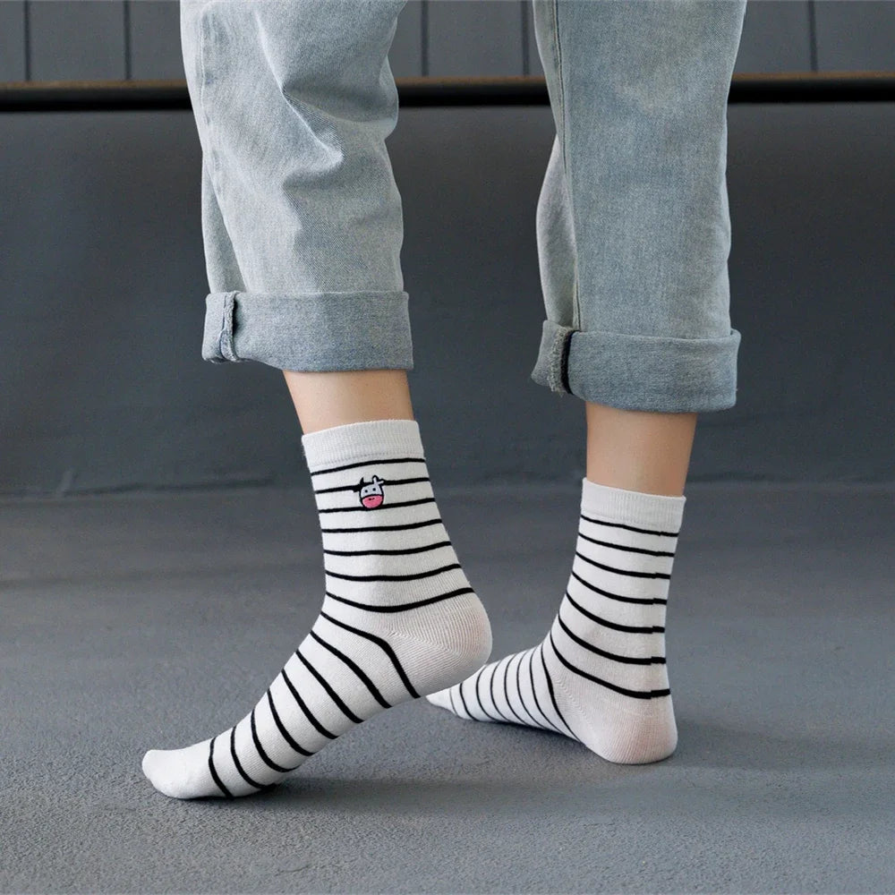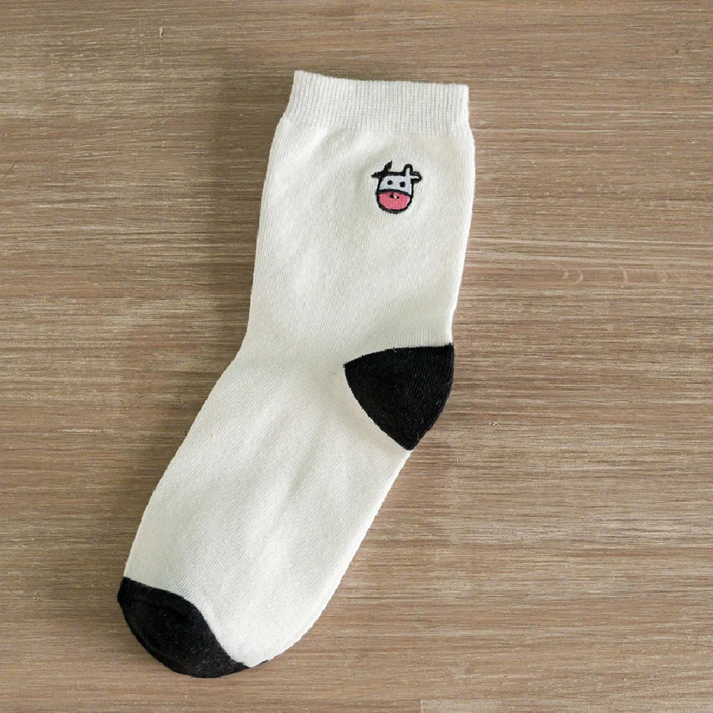 Funny Embroidery Cow Cartoon Socks