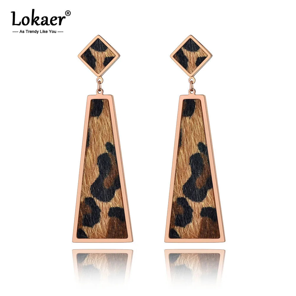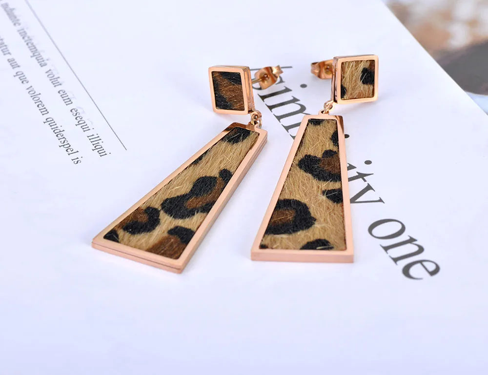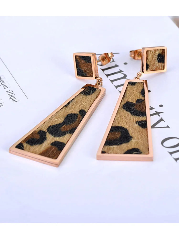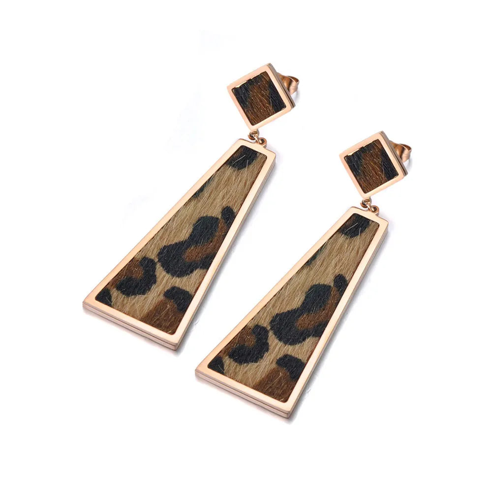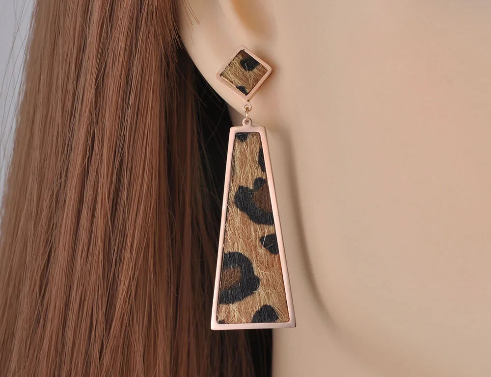 Leopard Leather Geometric Dangle Earrings