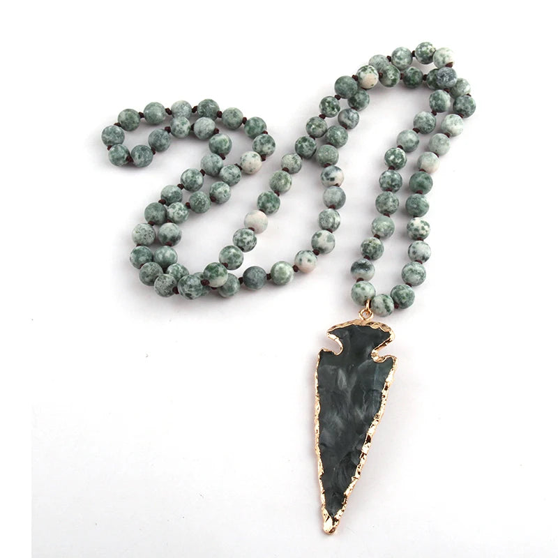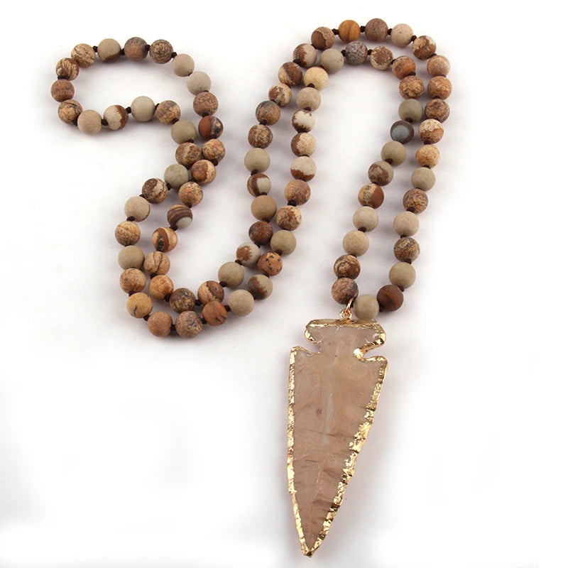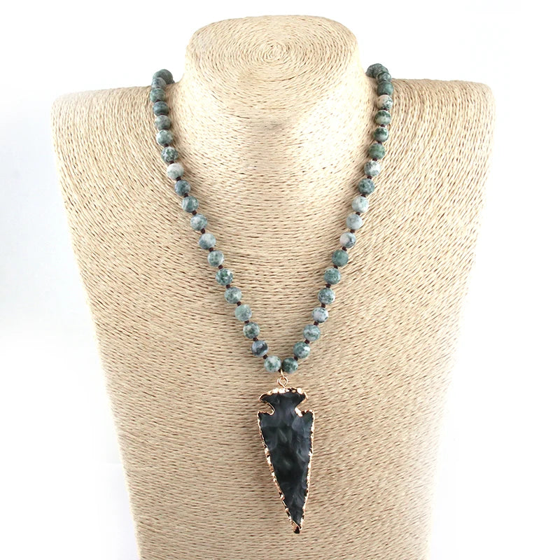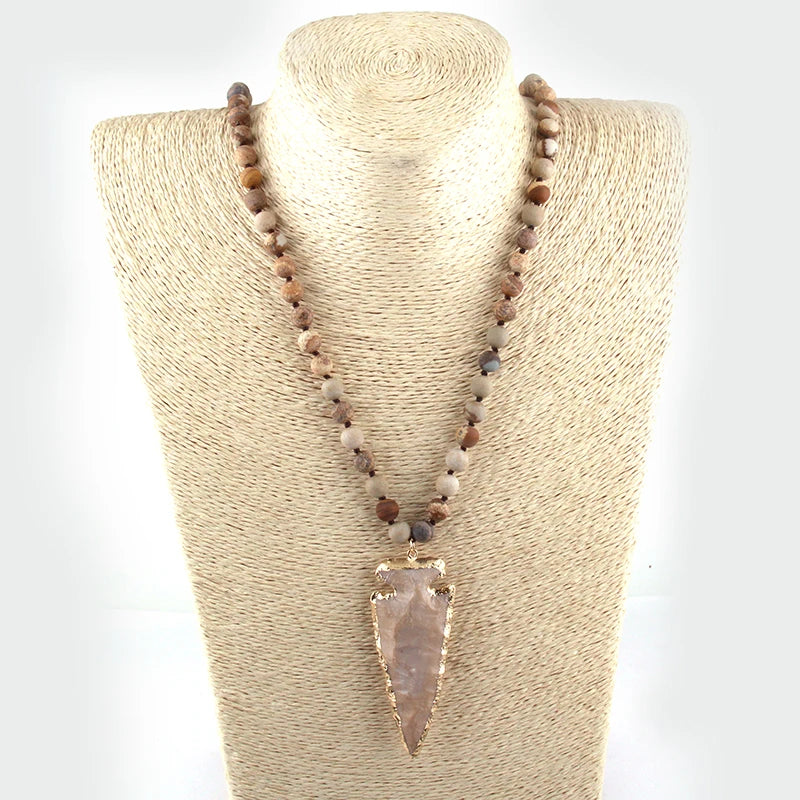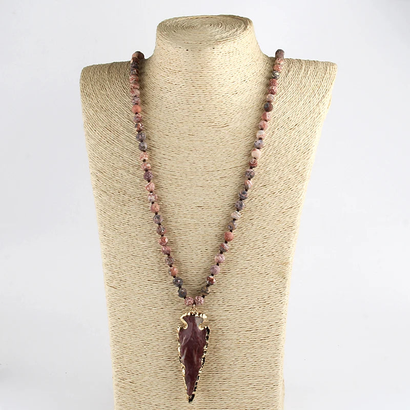 New Fashion Bohemian Tribal Jewelry Natural Stone Knotted Necklaces Arrowhead Pendant Women Ethnic Necklace