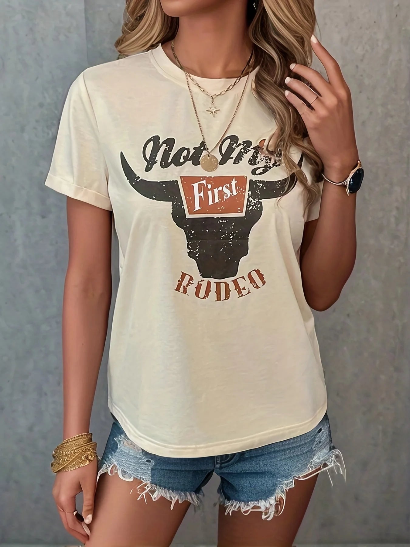 Not My First Rodeo Graphic Tee Shirts Women Steer Skull Western T-Shirt