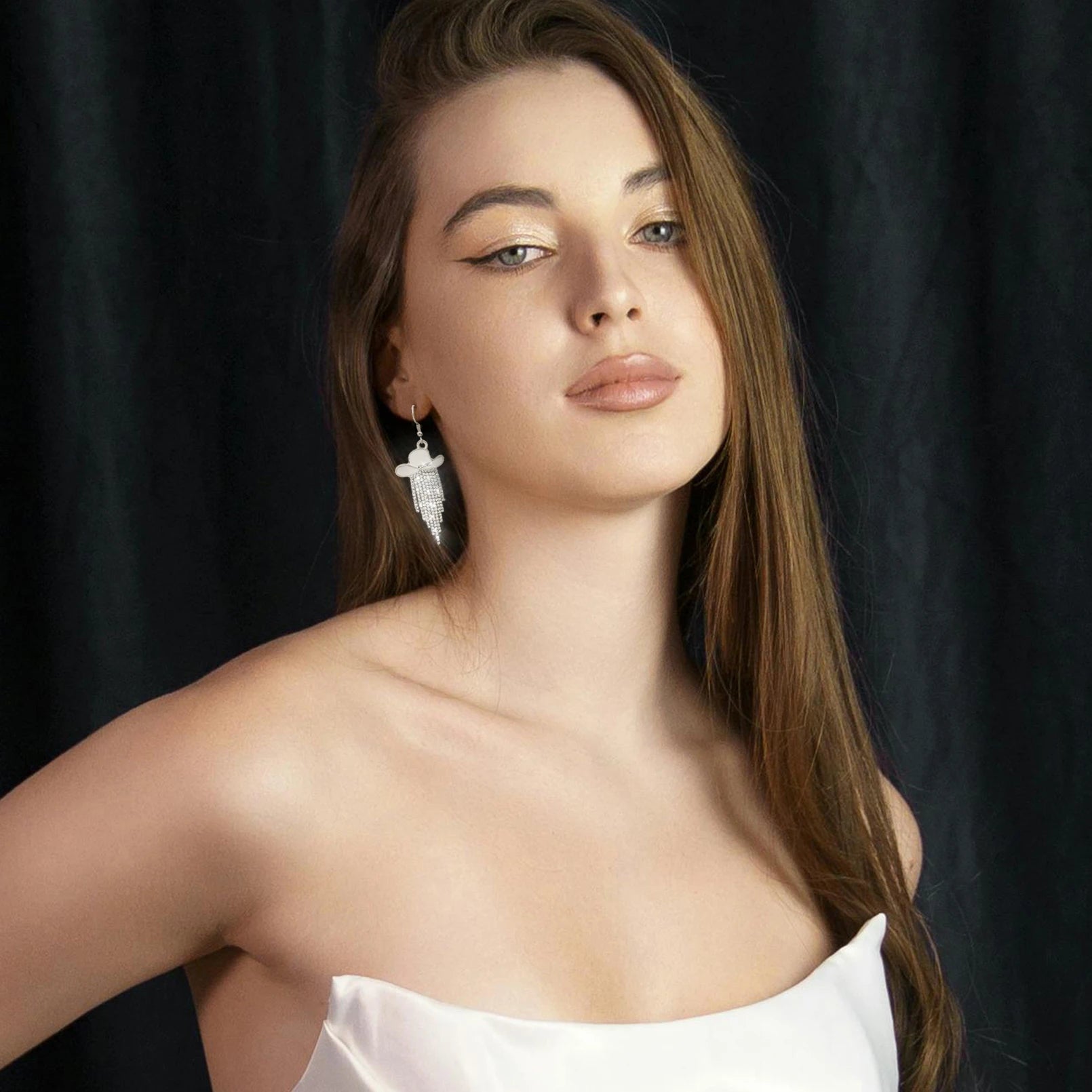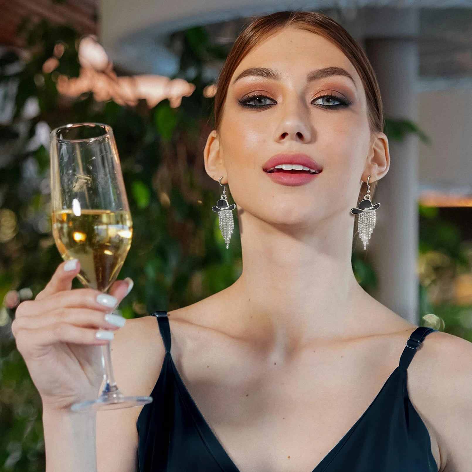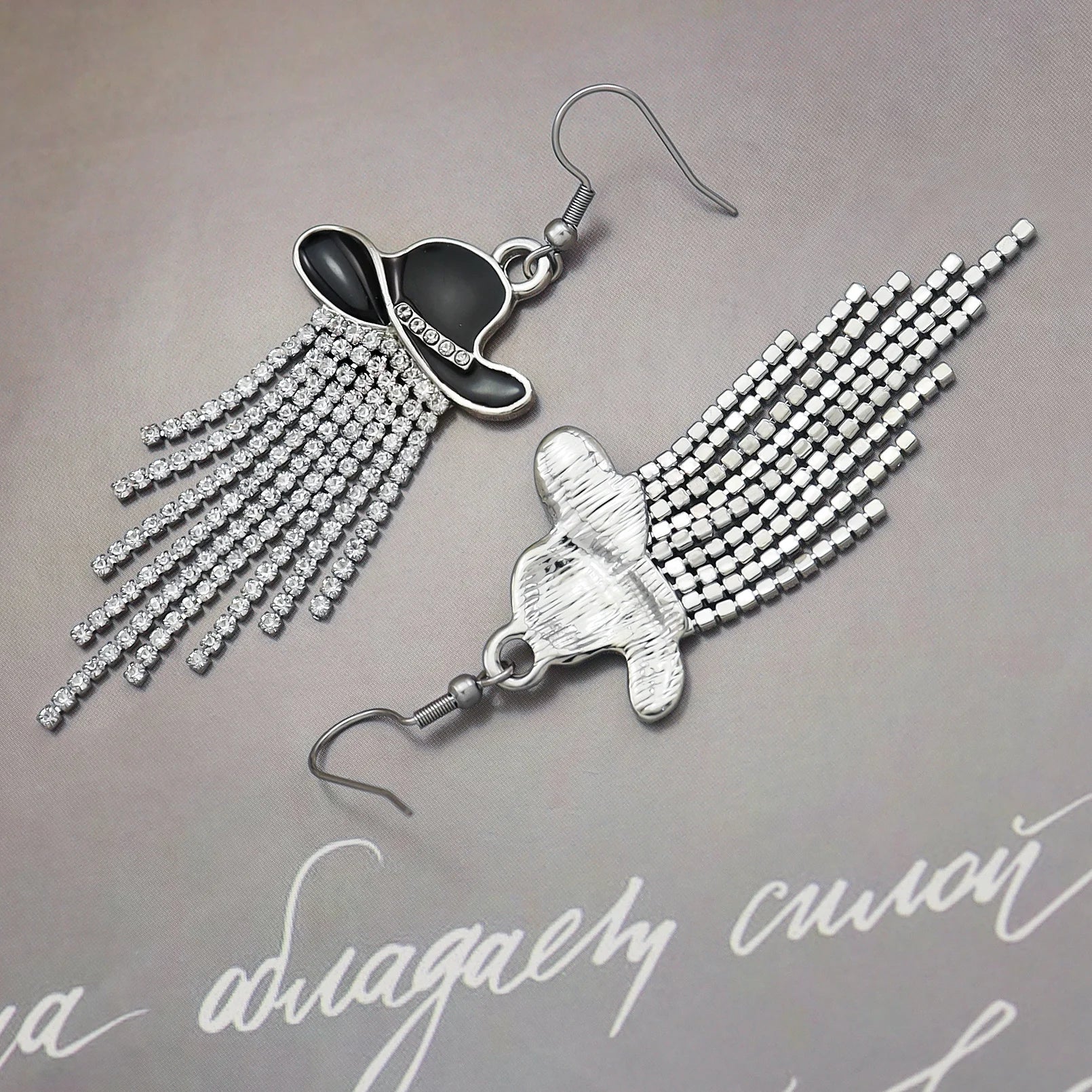 Western Cowgirl Hat Dangle Earrings Sparkly Rhinestone